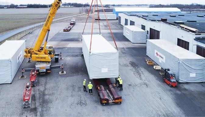 The modules were preinstalled in Sweden and shipped to site for assembly. The design and purchase are made according to local regulations such as NEN 1010.